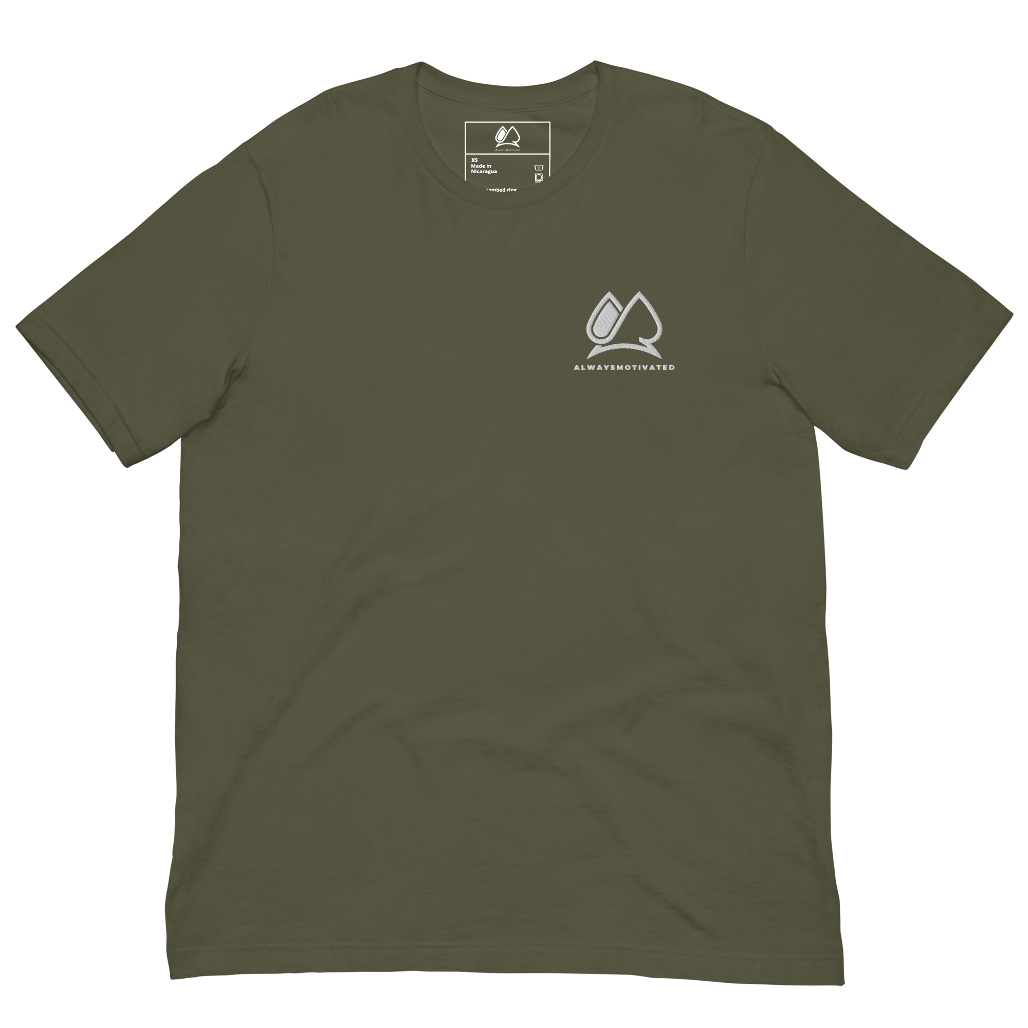 Always Motivated T-Shirt embroidered (Military Green/White)